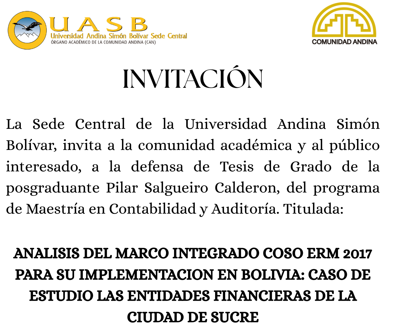 Invitación a defensa de Tesis Doctoral