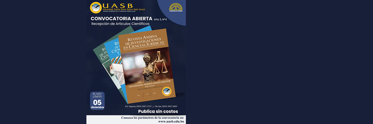 Convocatoria Abierta Recepción de Artículos Científicos “Revista Andina de investigaciones en Ciencias Jurídicas”